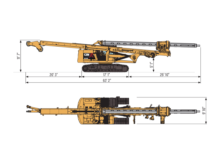 The EK160 is a cylinder crowd drilling rig mounted on a Cat® 330. It is CZM’s most popular model and can be easily converted from Long Mast to Short Mast. It is the most powerful one load machine in the market, with easy set up, completely self erecting.