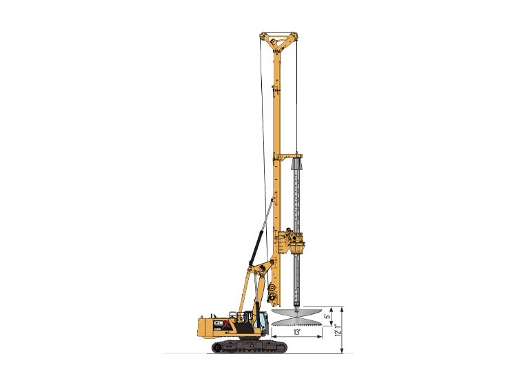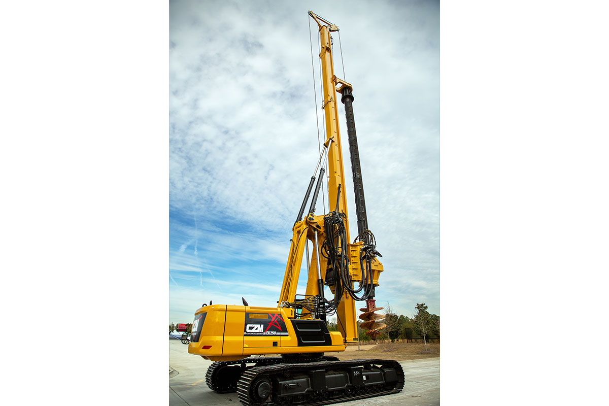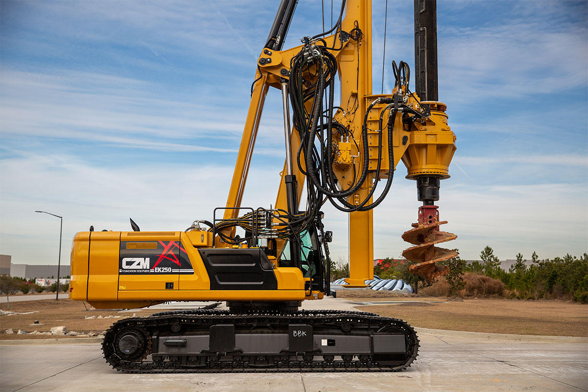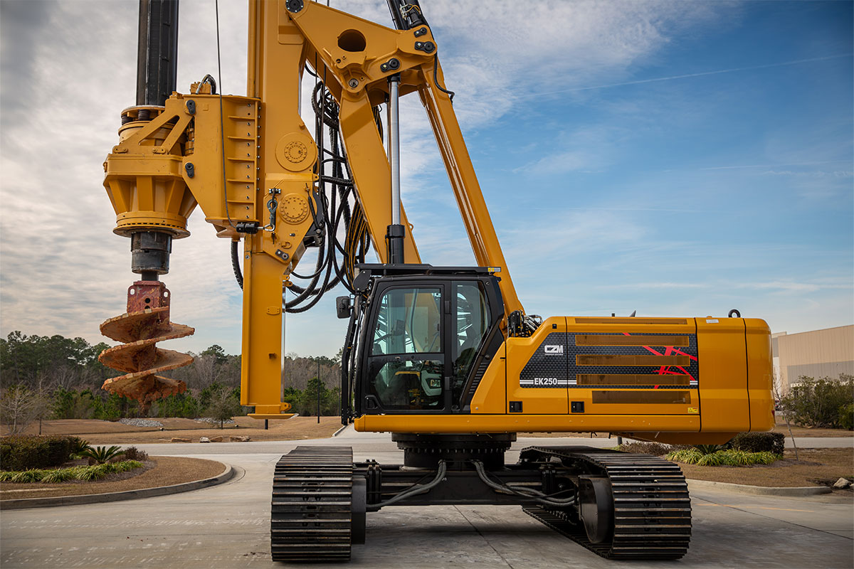 The EK250 is a cylinder crowd drilling rig mounted on a Cat® 340. It is CZM’s most popular machine for drilling on very hard rock. The size and weight of the rotary and kelly bar allow a high effective crowd force. It is deal to handle large diameter, deep holes on hard rock. It can be supplied as a Standard or Short Mast configuration.