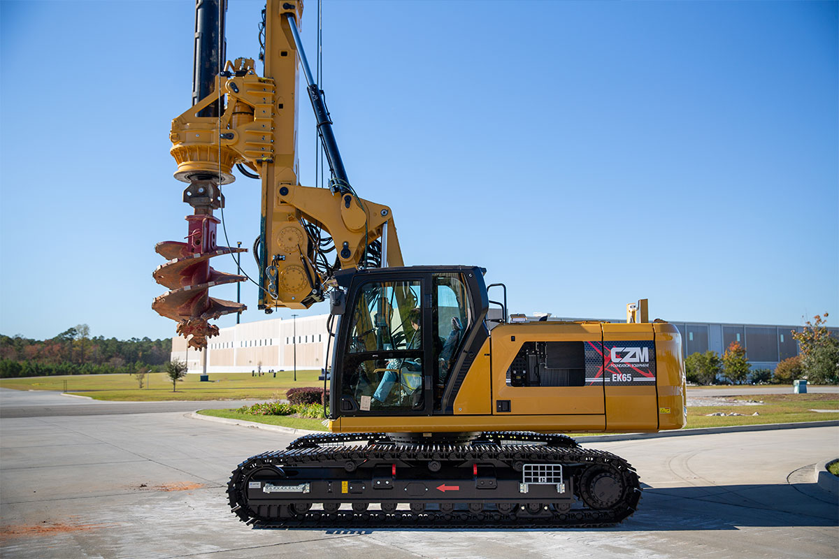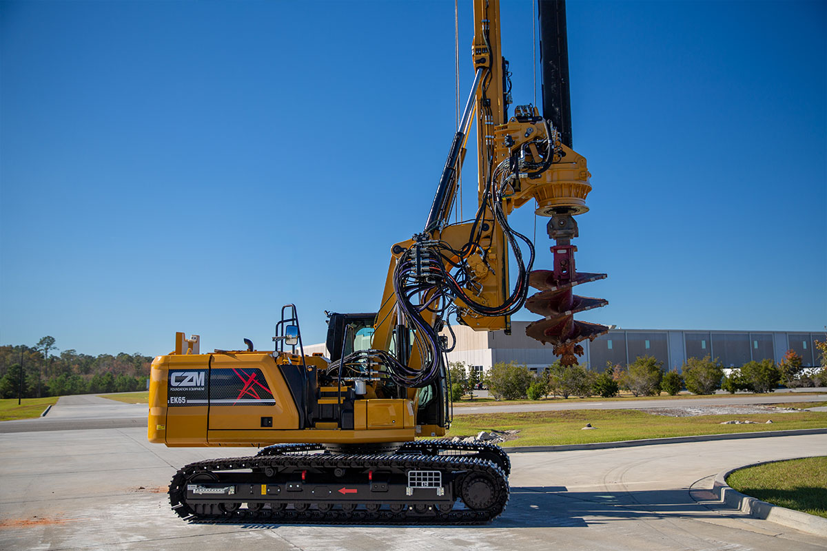 The EK65 is the smallest machine CZM builds. It is a cylinder crowd drilling rig mounted on a Cat® 317 Next Gen. It is a very popular model for applications where space and overhead height are limited. It can be easily converted from Long Mast to Short Mast. It is a one load machine, with easy set up, completely self erecting.