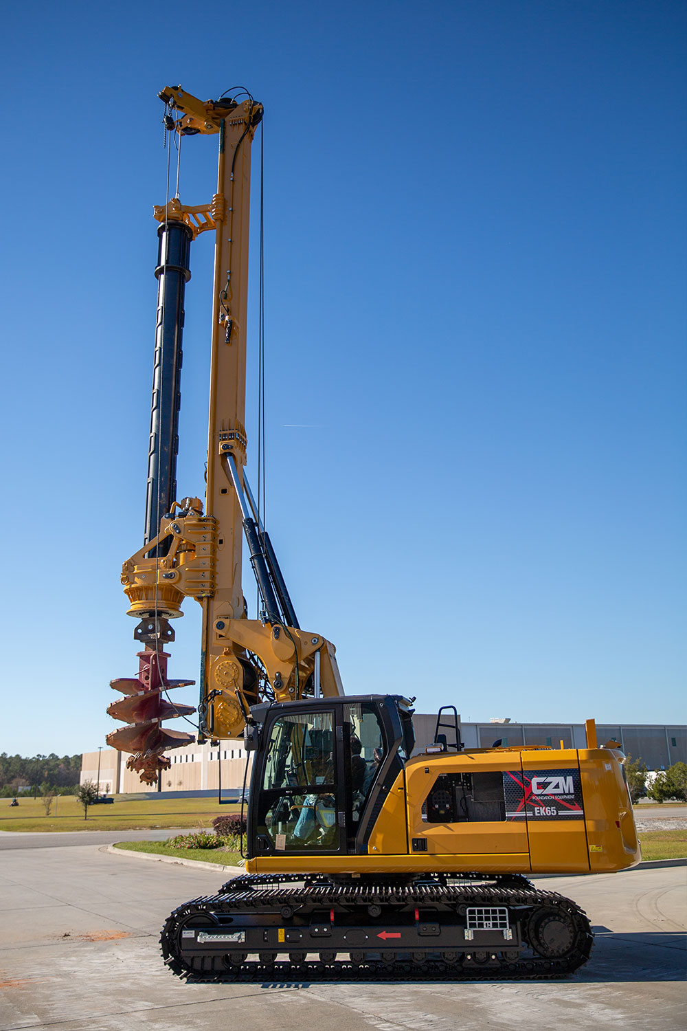 The EK65 is the smallest machine CZM builds. It is a cylinder crowd drilling rig mounted on a Cat® 317 Next Gen. It is a very popular model for applications where space and overhead height are limited. It can be easily converted from Long Mast to Short Mast. It is a one load machine, with easy set up, completely self erecting.