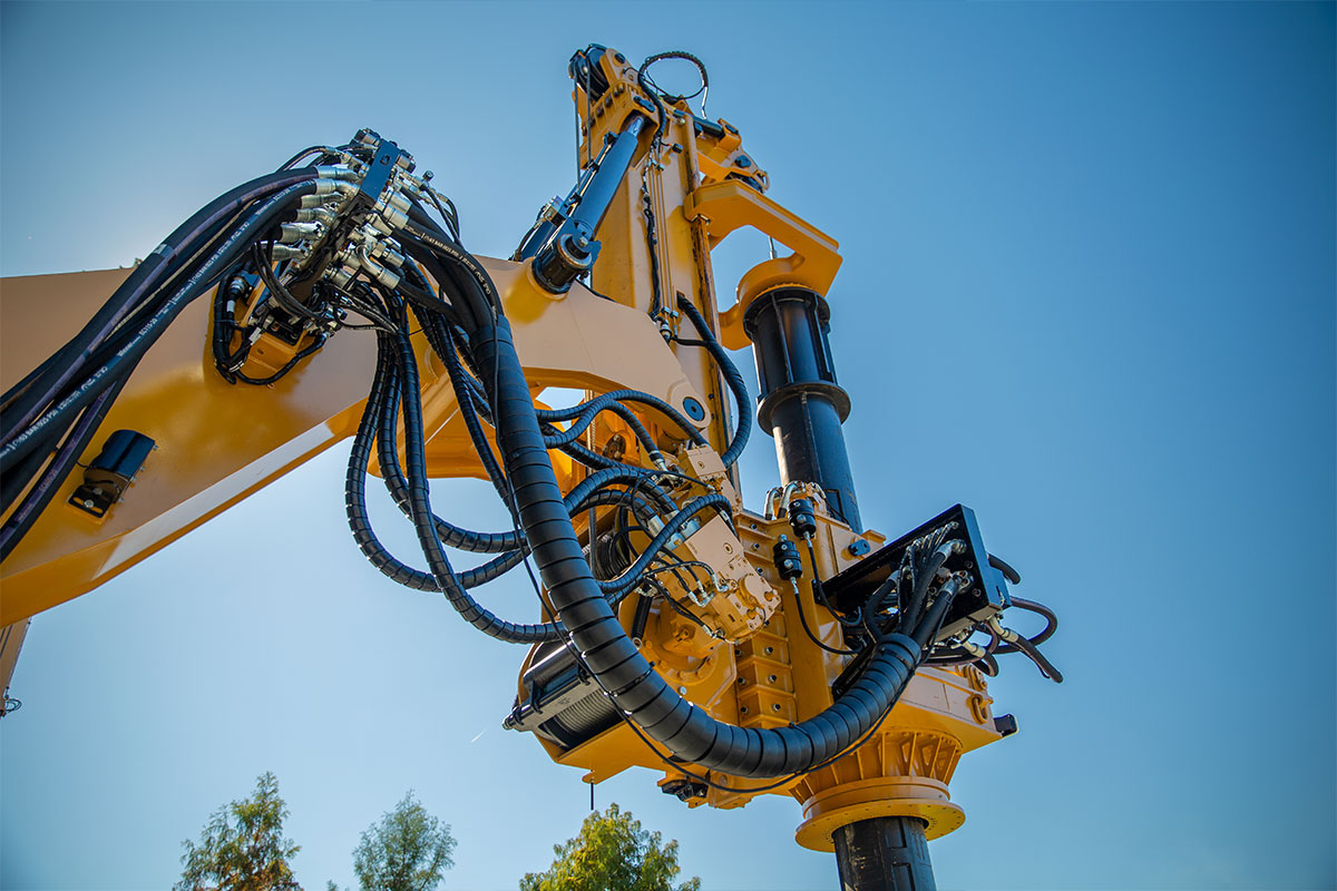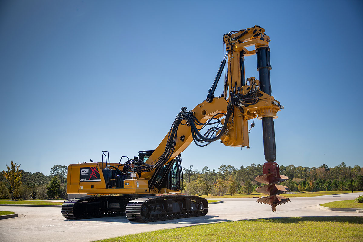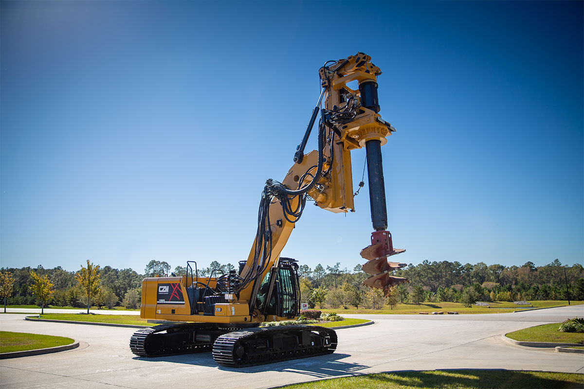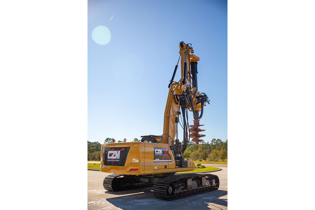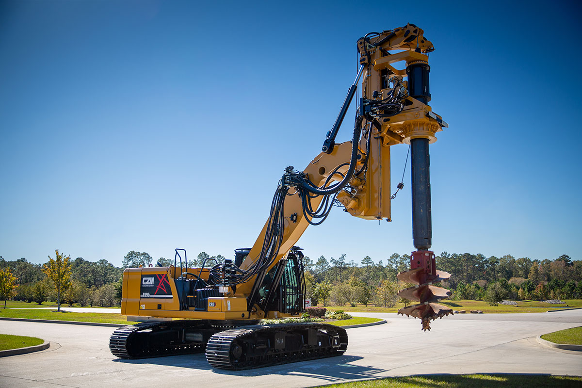 The LR95 is the medium size model of CZM’s Long Reach series, which is mounted on a Cat® 330 Next Gen with variable undercarriage. It has a special designed boom with 2 lift cylinders which allows for a higher torque and crowd force to be applied to the tool, which aligned with interlocking Kelly bars makes it efficient on rock and hard soil drilling. Round Friction bars are also available for high production on softer soils. The long reach configuration makes it ideal to applications such as sound bearing walls, transmission lines and utilities, drilling on a steep slopes, and difficult to reach holes.