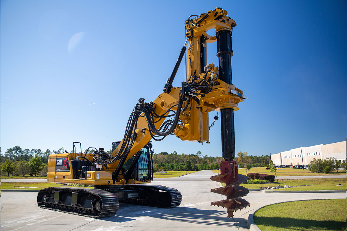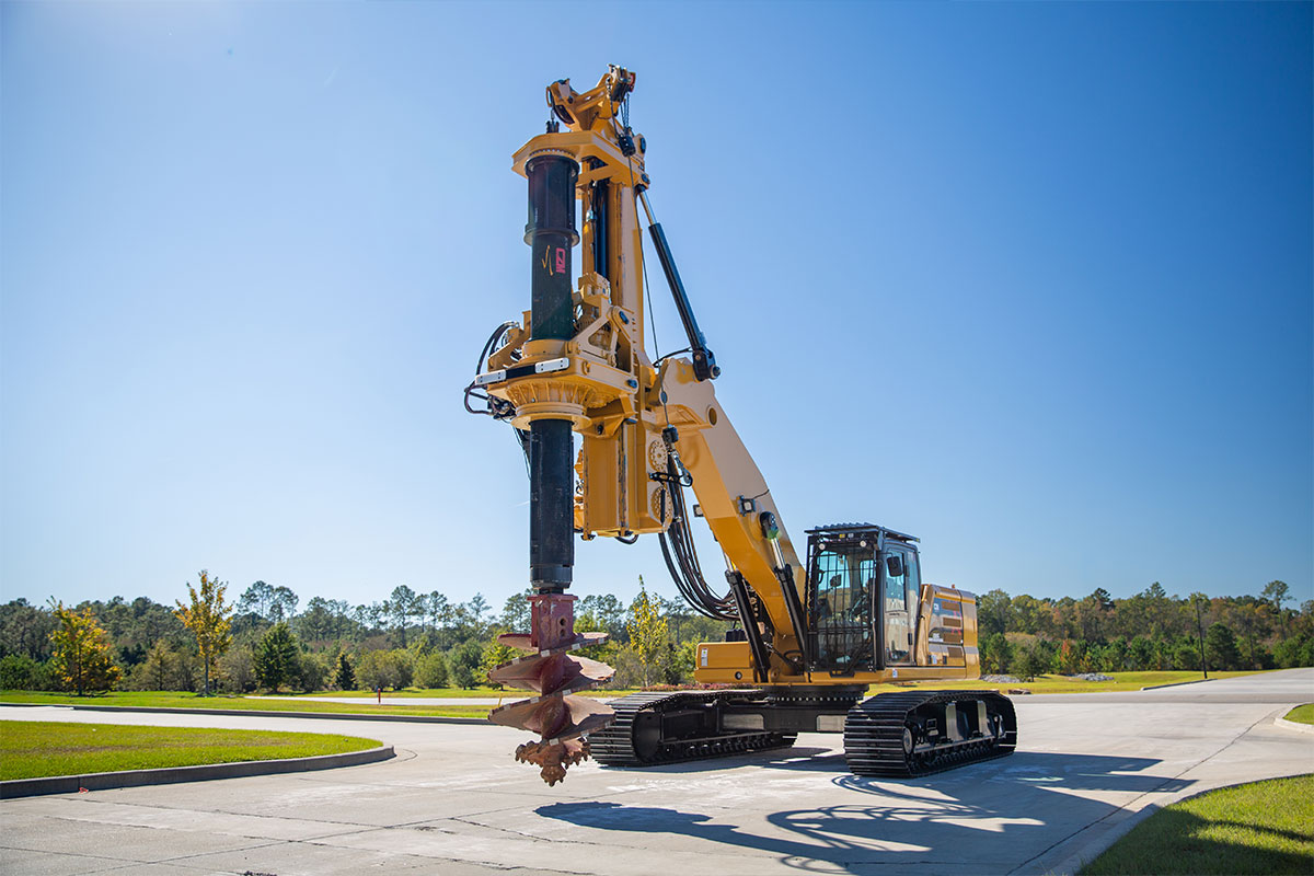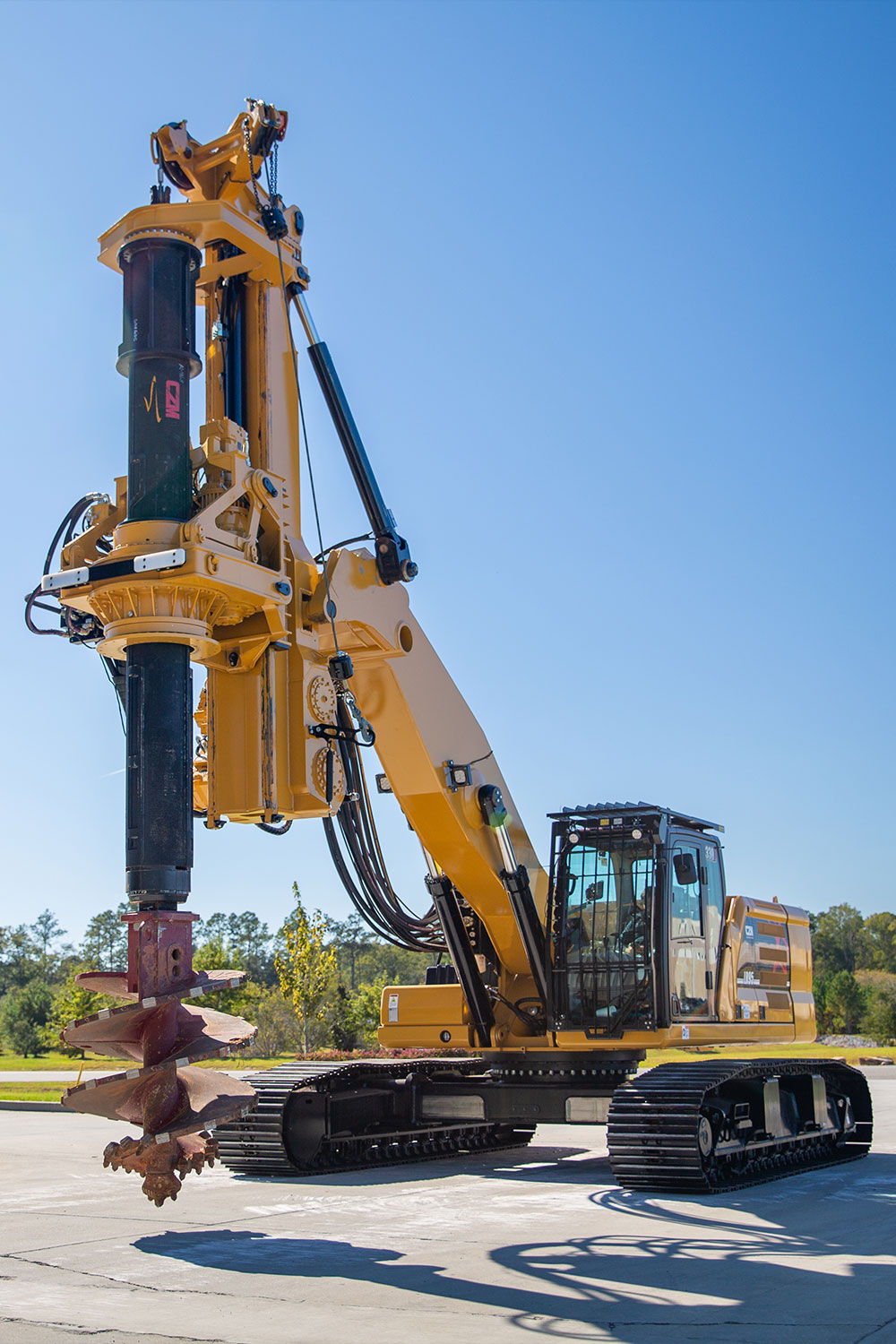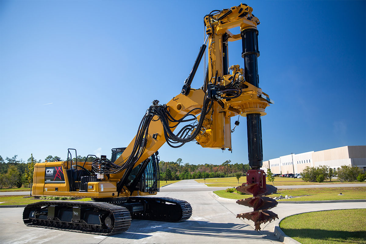 The LR95 is the medium size model of CZM’s Long Reach series, which is mounted on a Cat® 330 Next Gen with variable undercarriage. It has a special designed boom with 2 lift cylinders which allows for a higher torque and crowd force to be applied to the tool, which aligned with interlocking Kelly bars makes it efficient on rock and hard soil drilling. Round Friction bars are also available for high production on softer soils. The long reach configuration makes it ideal to applications such as sound bearing walls, transmission lines and utilities, drilling on a steep slopes, and difficult to reach holes.